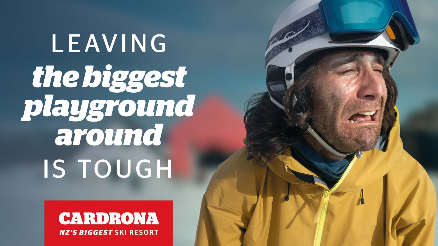 I led the creative direction and copywriting for Cardrona’s winter campaign, developed in partnership with Wānaka-based production company The Beards. Marking Cardrona’s expansion into New Zealand’s biggest ski area with the opening of Soho Basin, the campaign returned to Cardrona’s playful roots, flipping the typical end-of-day ski scene on its head.