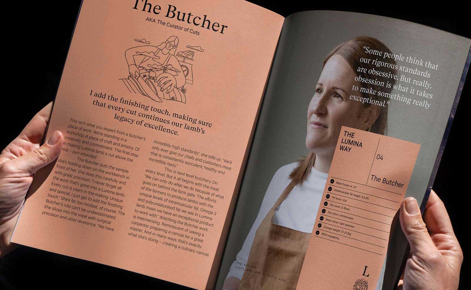 I developed the written narrative, brand attributes, tone of voice and storytelling elements in collaboration with the project team and subject matter experts. Working with ThoughtFull, I helped create the brand story for Lumina Lamb, a new ultra-premium New Zealand lamb brand positioned for Michelin-starred chefs worldwide. The work involved extensive interviews with global chefs, deep immersion into the farming and genetic science behind the product, and the development of a narrative that captured the innovation, human endeavour and regenerative farming practices behind its creation.