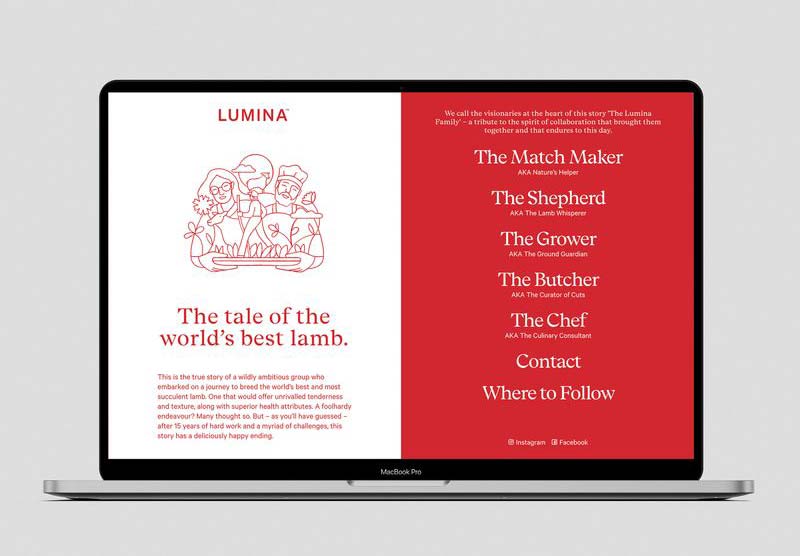 I also developed content across key brand touchpoints, including the website, to bring the full brand experience to life. The resulting brand positioned Lumina as a world-first product: chef-focused, planet-positive and unlike any other premium New Zealand lamb.